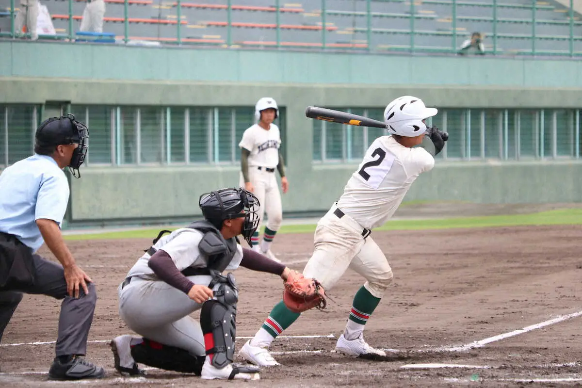 2回に守備のミスが重なって3失策。序盤から3点を追う想定外の展開を強いられた。6回に3得点して一気に同点。7回1死三塁から殊勲の一打で勝負を決めた。「前にも後ろにもいいバッターがいる。自分は気楽にやらせてもらっている」。3打数1安打1四球。捕手としても主戦の栗谷星翔(せいが)ら3年生投手2人とバッテリーを組んで守り切った。