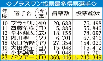プラスワン投票で史上最多の36万9446票。2位のヤクルト・村上と33万票以上差の圧勝だ。期待に応える準備はできている。バウアーは「皆さんに感謝。僕を見たいという方が多かったということ。どんな形であれ、必ずファンを楽しませようと思う」と誓った。