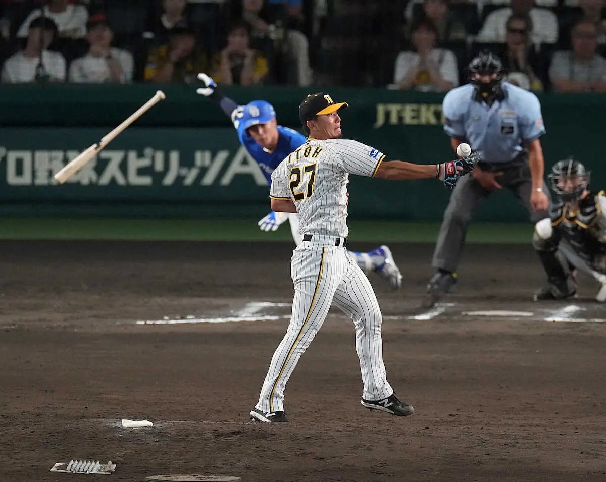 連打を浴び、犠打を挟んで1死二、三塁。溝脇を中野の好守で二飛に仕留め、2死までこぎつけた。代打・後藤に対しては、全球直球勝負を選択。カウント1―2と追い込みながら、4球目に投じた142キロが、坂本が構えた外角低めより高く浮いたところを捉えられた。中前適時打となって2者の生還を許した。4回、細川に今季甲子園では自身初被弾となる左越えソロを浴びたものの、その1点のみで6回まで粘っていただけに、最後の失投が重く響いた。