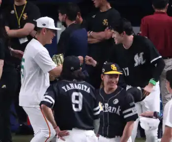 【球宴】「線審はライト白井」のコールに観客も拍手 昨年、朗希への注意が話題に
