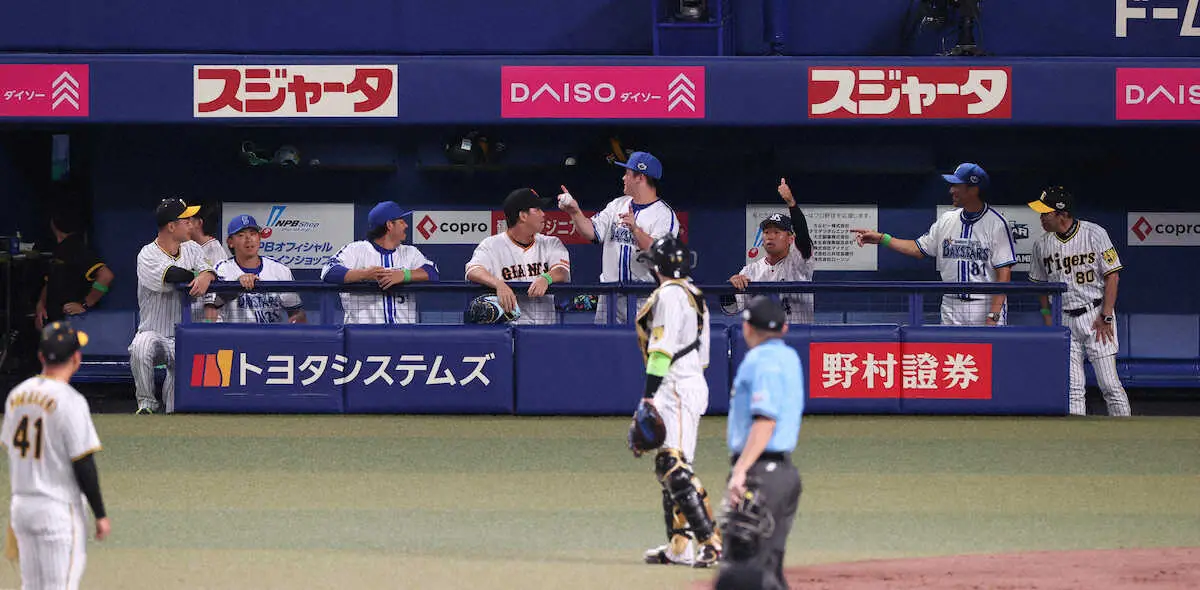 同じ場面について阪神・岡田監督は試合後「高津がおらんかったからな。インタビューかなんかしてたんちゃうか」と説明。ノイジーの好返球でアウトを確信していたのか聞かれ「いやいや。お前、みんながアウトアウト言うし、ちょうどベンチにいてなかったからな。それで俺がもうしょうがなしにや」と“監督代行”の心境を語り笑った。