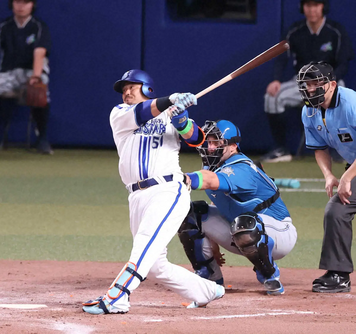 全セはDeNA・宮崎のバットがチーム唯一の得点を生み出した。8点を追う7回、外角の直球を広いバンテリンドームの逆方向に運ぶ右越えソロ。「(狙いは)真っすぐ一本で。しっかり自分のスイングができた」。前回出場だった18年に続く5年ぶりの一発に「ちょっと忘れていた。一本打てて良かった」と喜んだ。