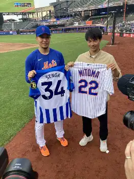 メッツ・千賀 初対面の三笘と笑顔でユニ交換 米国遠征中