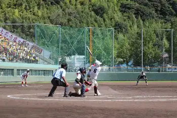 試合は苦しい展開だった。1回裏、4番・淡路文太(2年)の中前適時打で先制したが、5回表に失策、四球がらみで4点を奪われた。その裏、2死満塁から再び淡路の飛球が左前にテキサス性二塁打となって落ち、走者一掃で同点。ところが6回表にまた1点を勝ち越された。