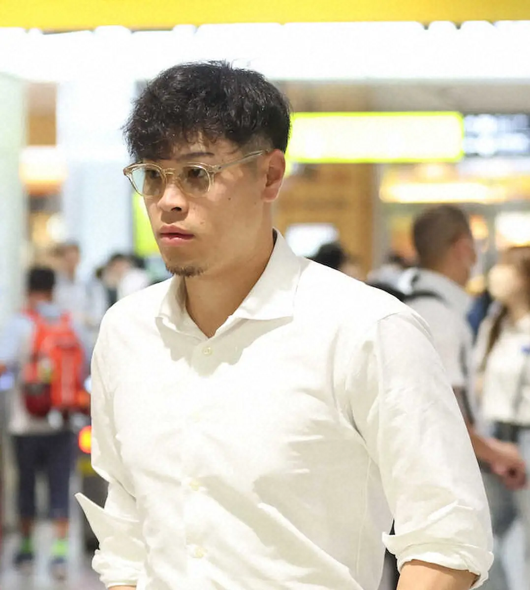 広島駅から移動する佐藤輝(撮影・大森 寛明)