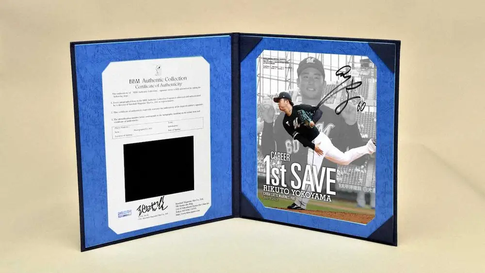 横山投手初セーブ記念の直筆サイン入りフォトファイルの画像(球団提供)