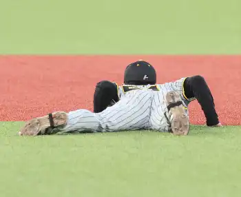 神宮左翼席から大ブーイング 阪神・近本に死球 離脱要因になった右肋骨付近でヒヤリ