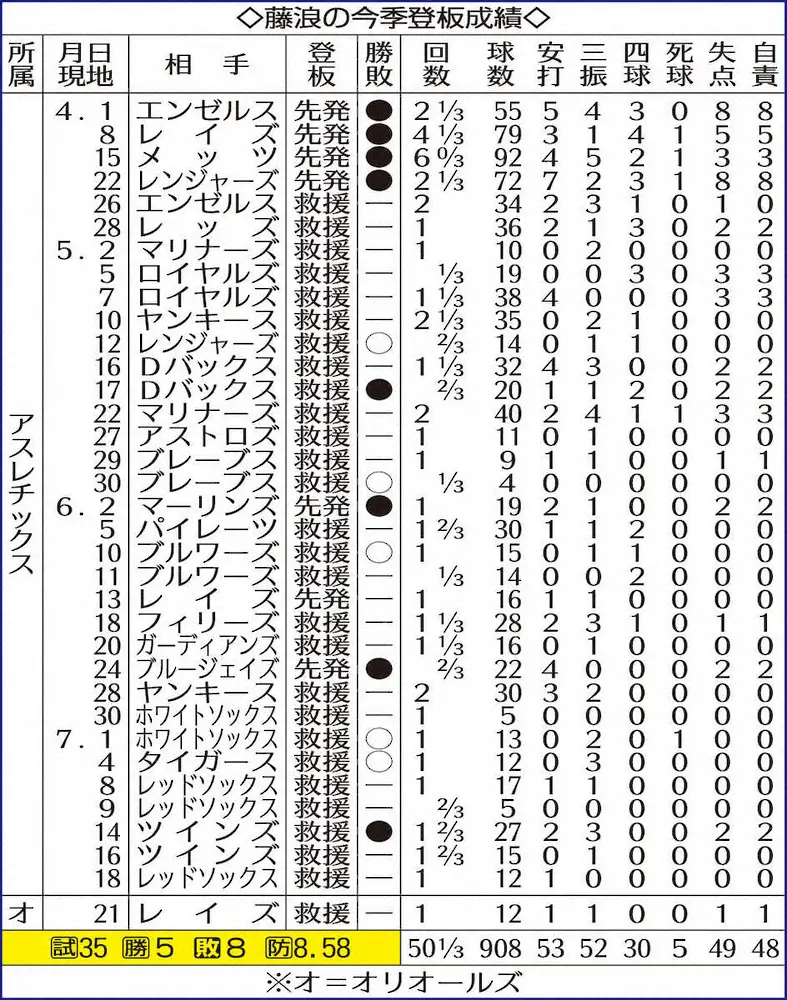 <レイズ・オリオールズ>2試合連続で救援に失敗した藤浪(AP) Photo by AP 藤浪晋太郎 制球難“再発”にネット「首位…精神的に違うのかも」「制球はも… ギャラリーで見る この記事のフォト 2023年07月23日の画像一覧 もっと見る 2023年07月23日の画像をもっと見る
