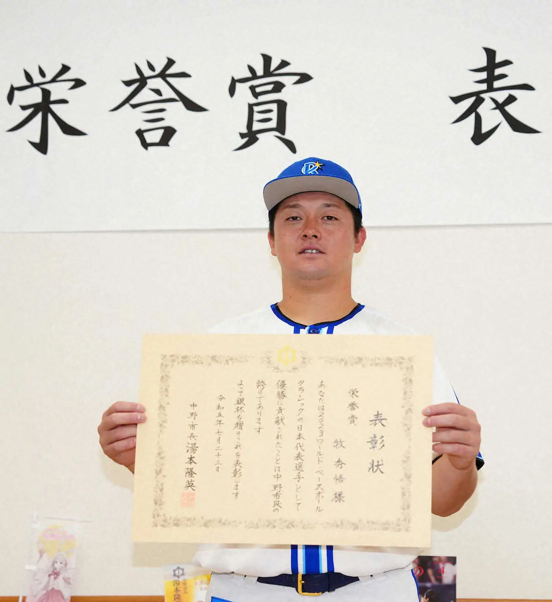 <D・巨15>湯本隆英・中野市長(左)と原沢年秋・中野市議会議長(右)から表彰された牧(撮影・島崎忠彦) Photo by スポニチ DeNA牧 出身地・長野県中野市民栄誉賞 WBCの功績称えられ「市民に勇気と… ギャラリーで見る この記事のフォト 2023年07月23日の画像一覧 もっと見る 2023年07月23日の画像をもっと見る