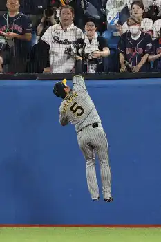 阪神・近本 「ジャンプしたら入っていました」超ファインプレーで首位死守 走って守ってさすがの存在感