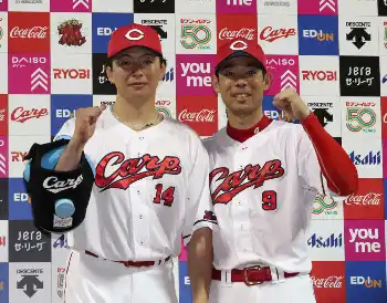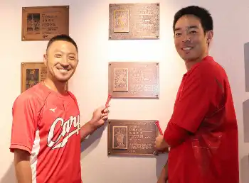 広島・秋山&菊池 W1500安打達成記念プレート マツダスタジアムに設置