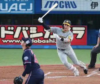 阪神・佐藤輝、歓喜の68打席ぶり適時打 8回ヤクルト・木沢撃ちで感情爆発「そりゃ出るでしょう」