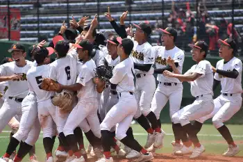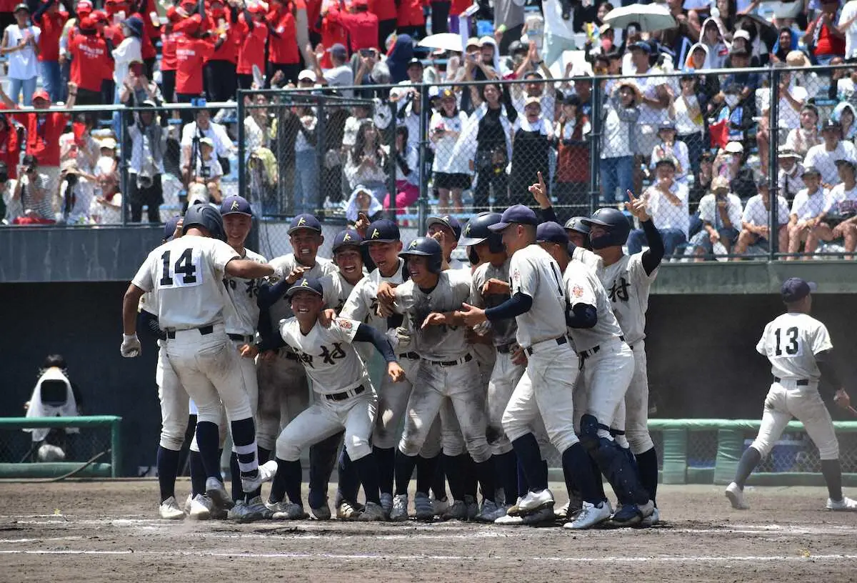 真っ赤に染まった神村学園スタンドの歓声は、しばらく鳴り止まなかった。1点を追う延長10回タイブレーク。4番の正林の右前適時打で同点に追いくと、ここまで無安打だった5番の岩下が直球をコンパクトに振り抜いて右越えにサヨナラ3ラン。公式戦では高校通算2本目に「自分がだめでも後ろがいる。気持ちは楽だった。今までにないぐらい最高だった」と喜びが爆発。チームメートからもみくちゃにされた。
