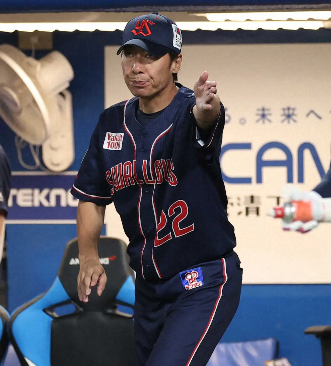 <ヤ・神>5回、代打を告げる高津監督(撮影・北條 貴史)
