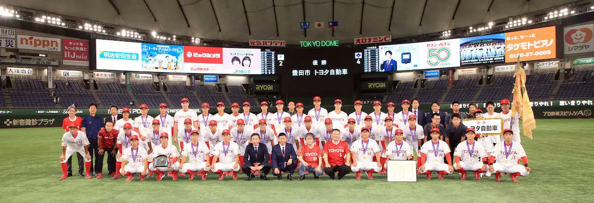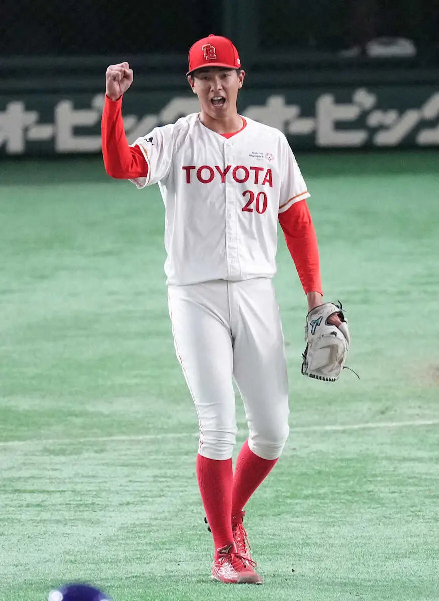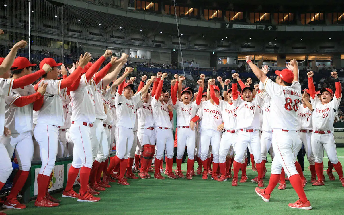 <ヤマハ・トヨタ自動車>優勝し歓喜の嘉陽(中央左)らトヨタ自動車ナイン(撮影・木村 揚輔) Photo by スポニチ トヨタ自動車が連続日本一 “社会人野球のエース”嘉陽が涙の橋戸賞 「勝… ギャラリーで見る この記事のフォト 2023年07月26日の画像一覧 もっと見る 2023年07月26日の画像をもっと見る