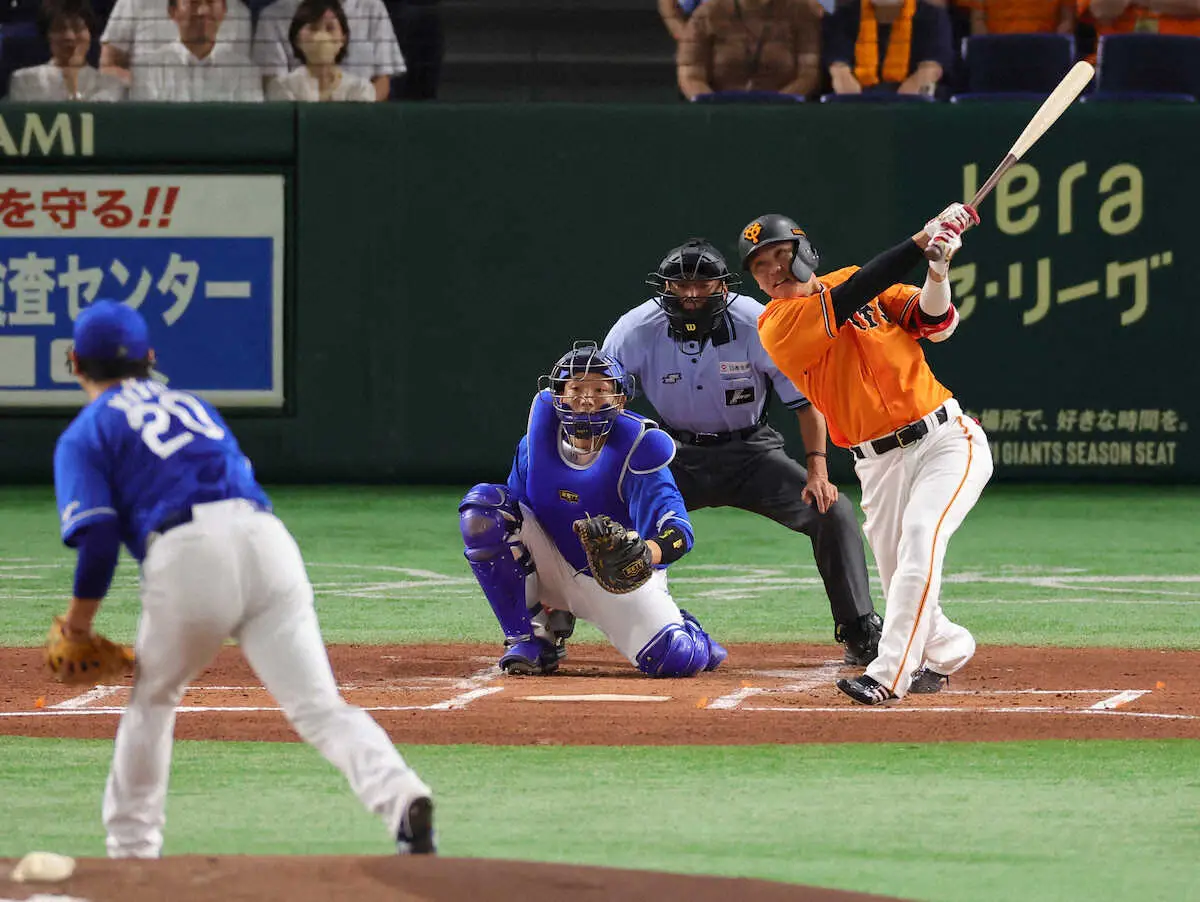 <巨・中>3回、坂本は適時打を放つ (撮影・西川祐介)