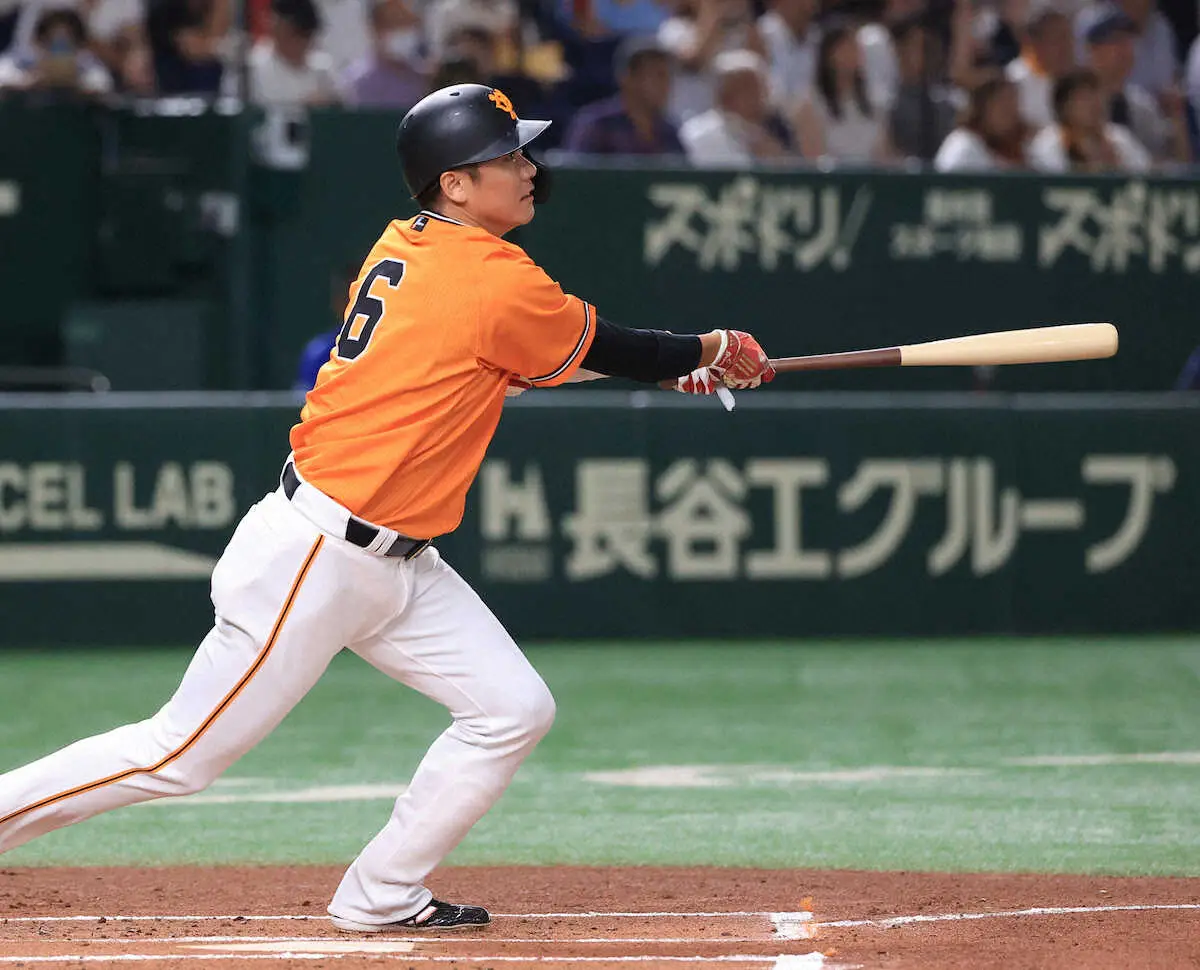 <巨・中>初回、坂本は二塁打を放つ (撮影・西川祐介)