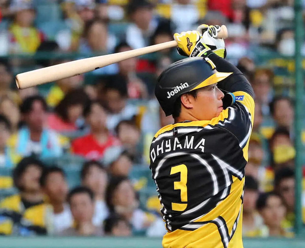 <神・広>初回、大山は先制犠飛を放つ(撮影・後藤 大輝)