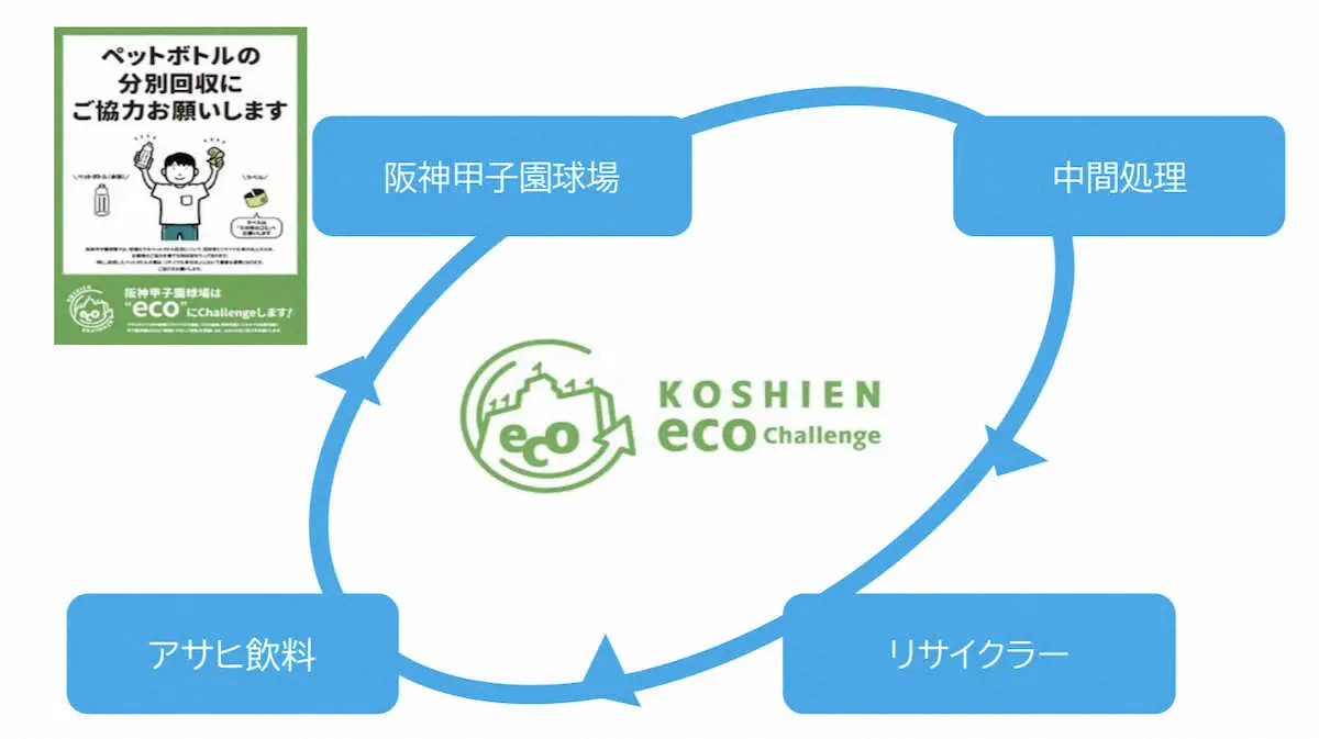 アサヒ飲料は、この「KOSHIEN eco Challenge」に賛同し、21年からオフィシャルエコパートナーとして甲子園球場のペットボトル回収・リサイクル率向上に向けた取り組みをサポートしている。
