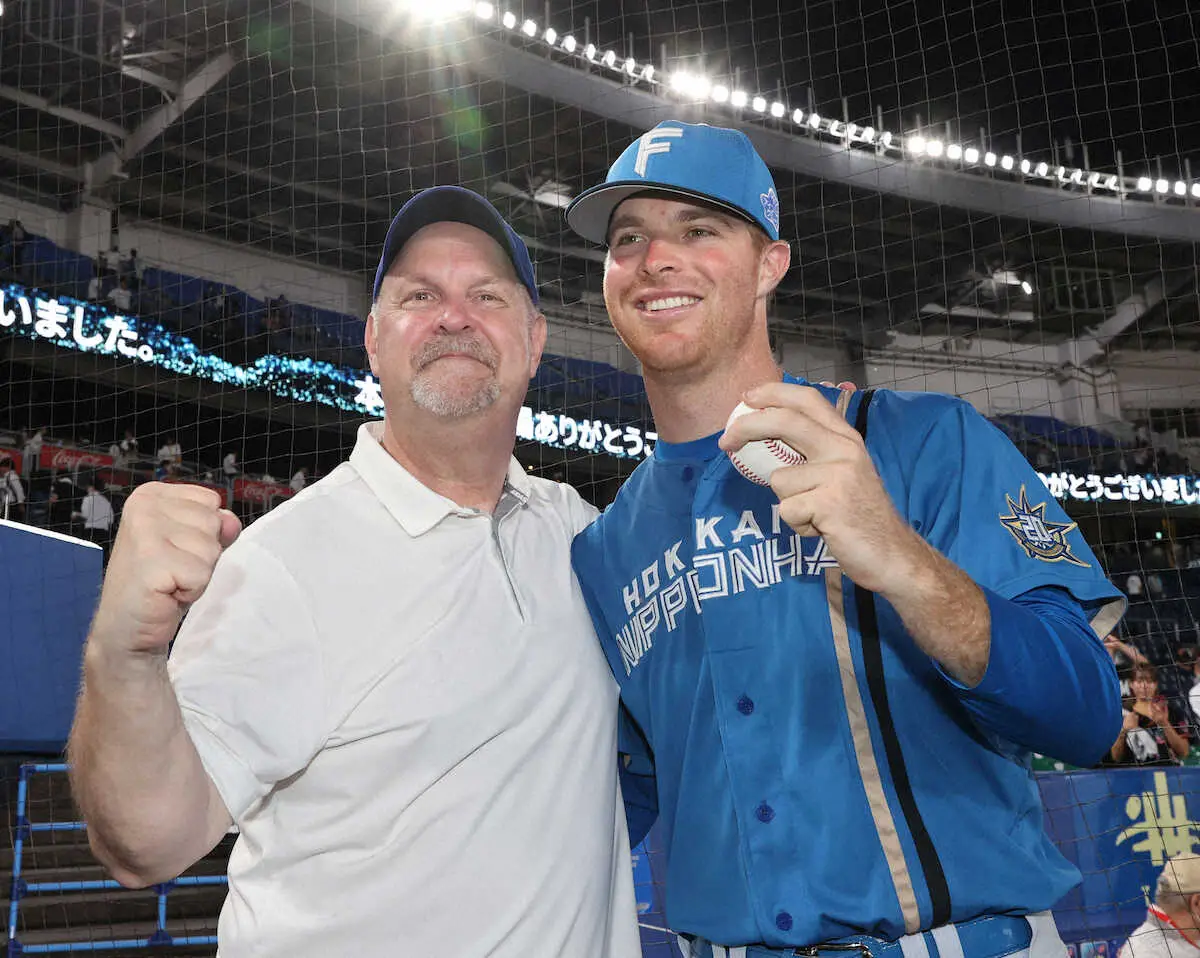 上原の緊急降板を受けて5イニング73球3安打4奪三振無失点。来日3登板目でうれしい初勝利となったマーベルは、敵地でのヒーローインタビューに笑顔で登場し「日本で1勝目を挙げることができてうれしく思います日本の、ファイターズの選手の皆さんと一緒にプレーすること、自身を持って投げられたこと、伏見さんもいい配球をしてくれましたし、守備の皆さんも自分の勝利に貢献してくれてうれしく思います」「アリガトウ!アリガトウ!」と喜びを日本語でも表現。米国から応援に駆け付け、スタンドから息子の雄姿を誇らしげにスマホで撮影する父・ジョンさんに手を振りながら「最高の一日になりました」と笑顔で語った。インタビュー後には、グラウンドに降りてきた父とウイニングボールを手に記念撮影。異国の地で、忘れられない一日となった。