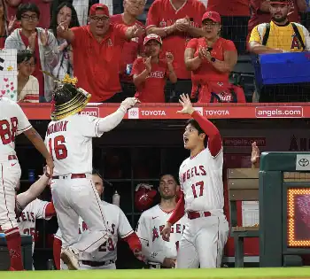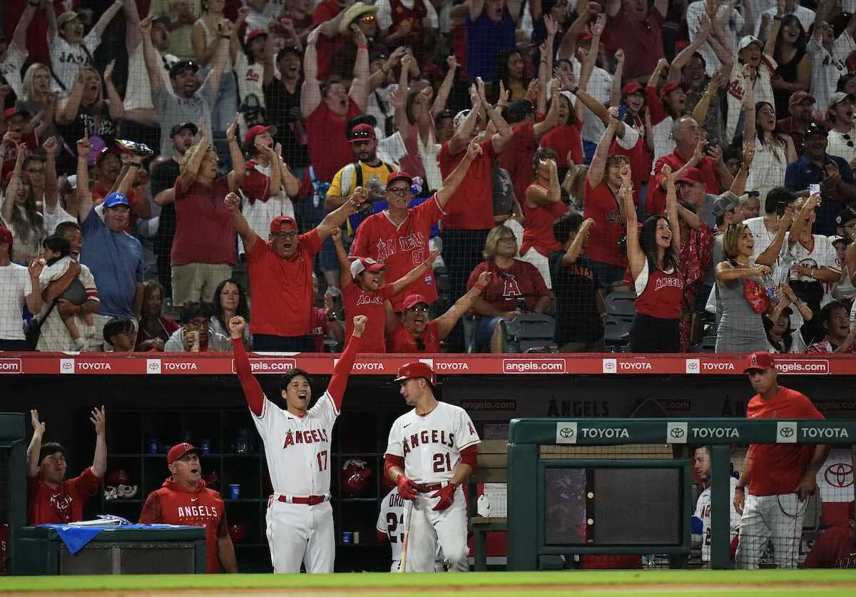 <エンゼルス・マリナーズ>5回、同点2ランを放ったモニアクを出迎える大谷(撮影・沢田 明徳) Photo by スポニチ 同僚の同点アーチに大谷翔平と水原一平通訳が大はしゃぎ「ファンじゃん」… ギャラリーで見る この記事のフォト 2023年08月05日の画像一覧 もっと見る 2023年08月05日の画像をもっと見る