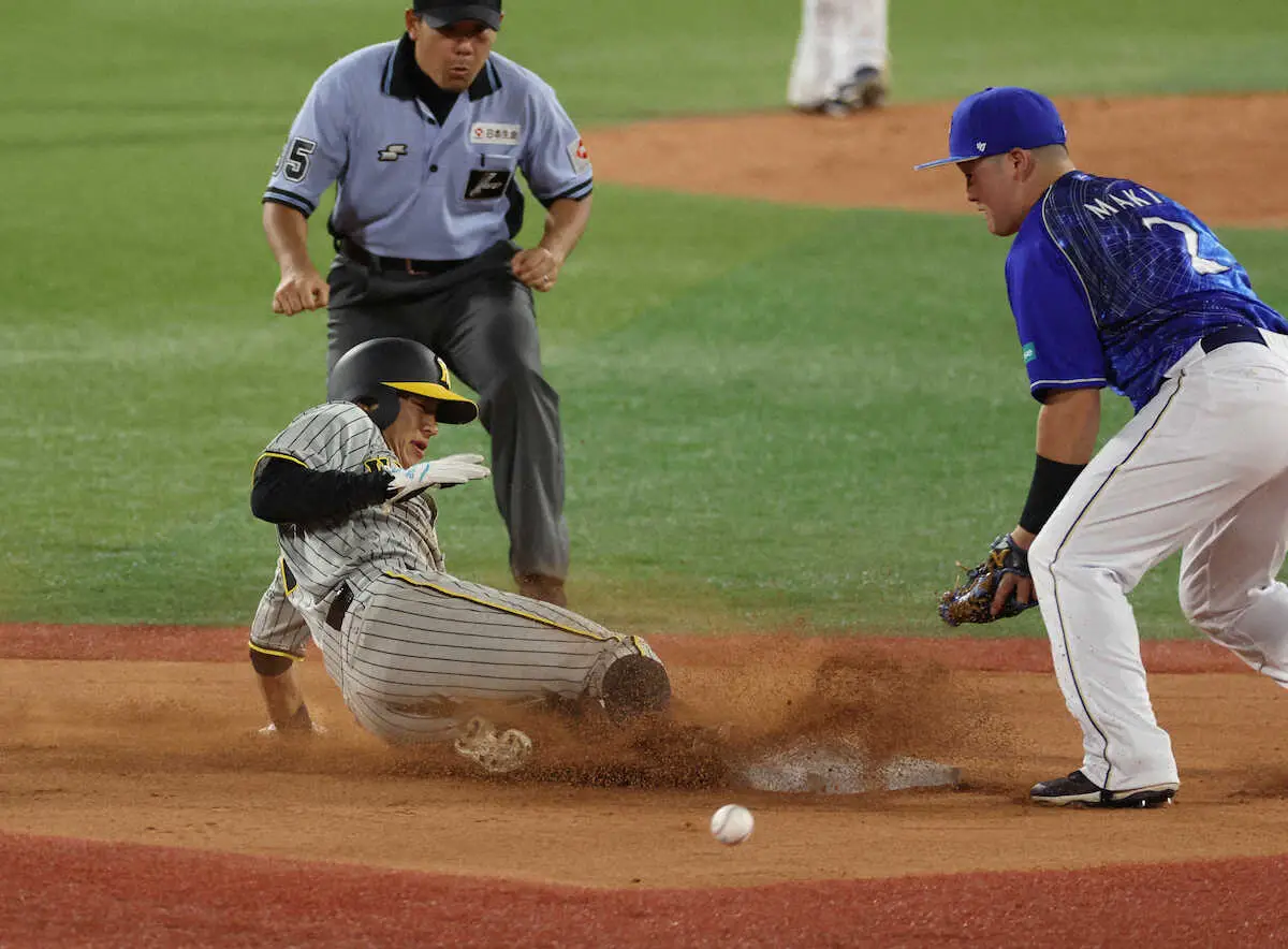足でつかみ取った大きな1勝だ。先制点、そして同点の生還はどちらも「盗塁」が起点となった。立役者は阪神・大山と植田。終盤の代走要員で、足が売りの植田のみならず、昨季までのプロ6年で通算13盗塁、今季もここまでわずか1盗塁だった大山の足が、虎の歩を逆転星へと進ませた。