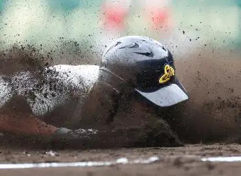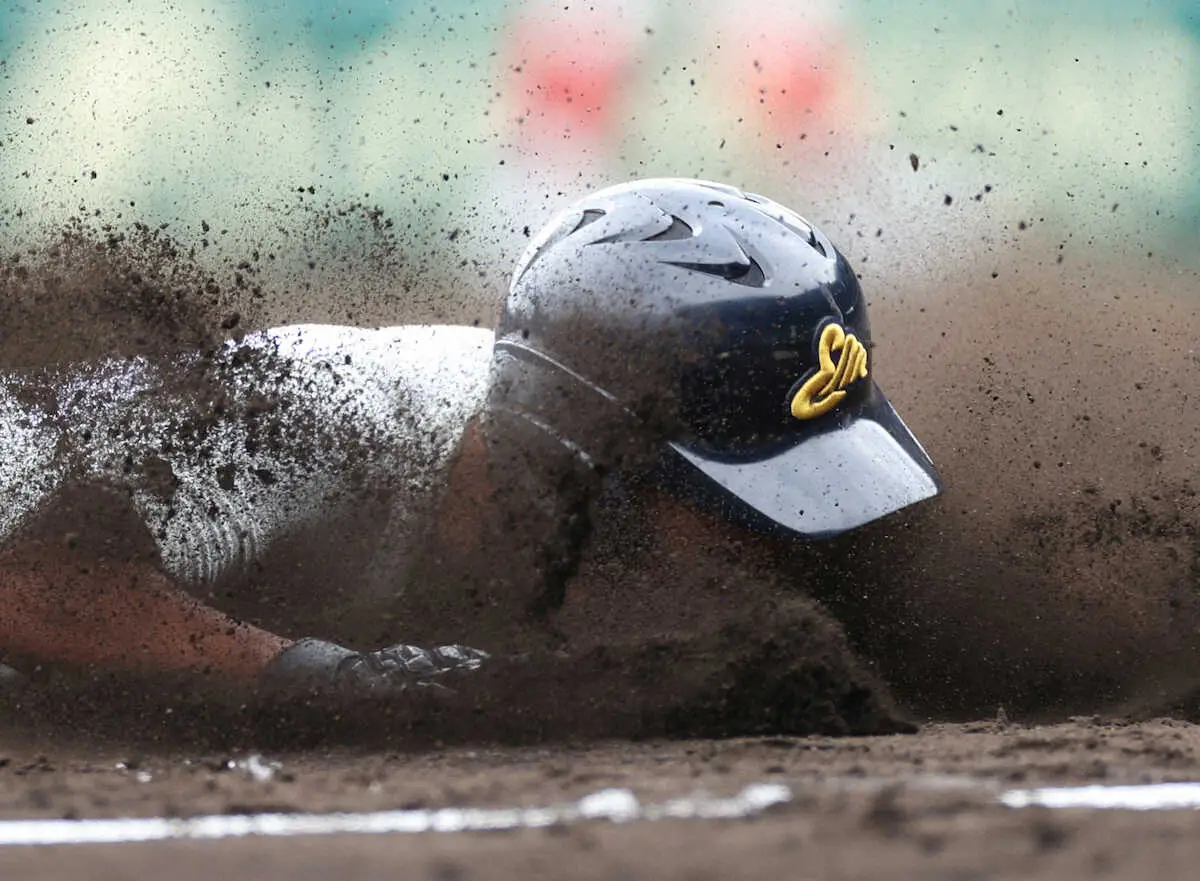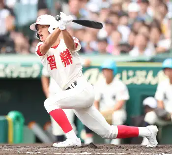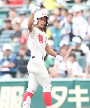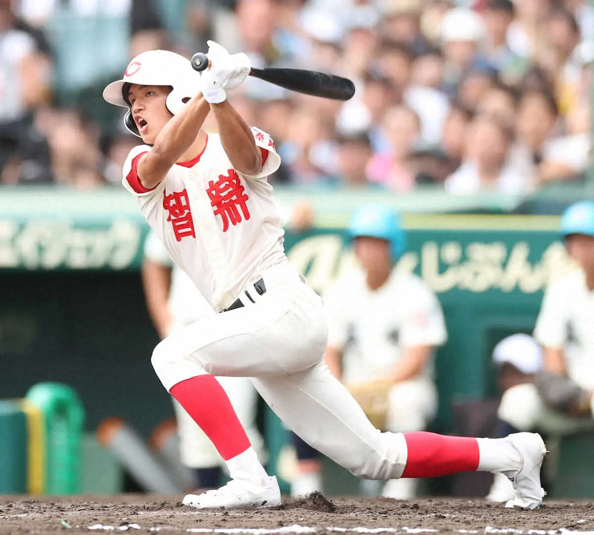 <智弁学園・英明>3回1死一塁、英明・寿賀は右翼線に同点の適時三塁打を放つ(撮影・北條 貴史)