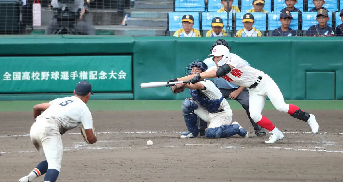 <智弁学園・英明>延長10回、智弁・谷口はサヨナラスクイズを決める(撮影・井垣 忠夫)