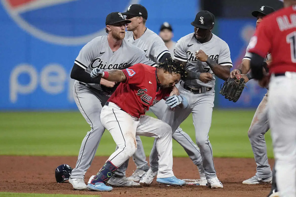 <ガーディアンズ・ホワイトソックス>ファイティングポーズを取り、乱闘を始めるラミレス(左)とアンダーソン(AP) Photo by AP 両軍計6人退場の大乱闘 口論からファイティングポーズの殴り合いに、ガ軍… ギャラリーで見る この記事のフォト 2023年08月07日の画像一覧 もっと見る 2023年08月07日の画像をもっと見る