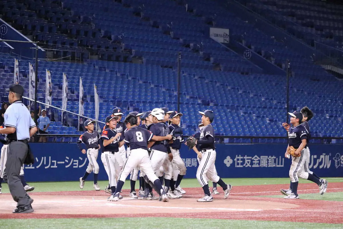 <不動パイレーツ・常磐軟式野球スポーツ少年団>勝利を決め、喜びを分かち合う不動パイレーツ(東京第2)のナイン
