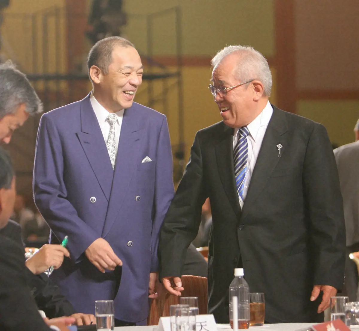 ドラフト前に挨拶を交わす中日・落合博満監督(左)と楽天・野村克也監督(2008年撮影)