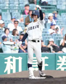 <宮崎学園・文星芸大付> 4回、文星芸大付・山田が先制の三塁打を放ちガッツポーズ (撮影・亀井 直樹)