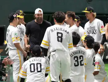 鷹党歓喜!ナイン爆笑!!逆転V狙うソフトバンクの円陣にあのレジェンド登場 近藤イジリで温める