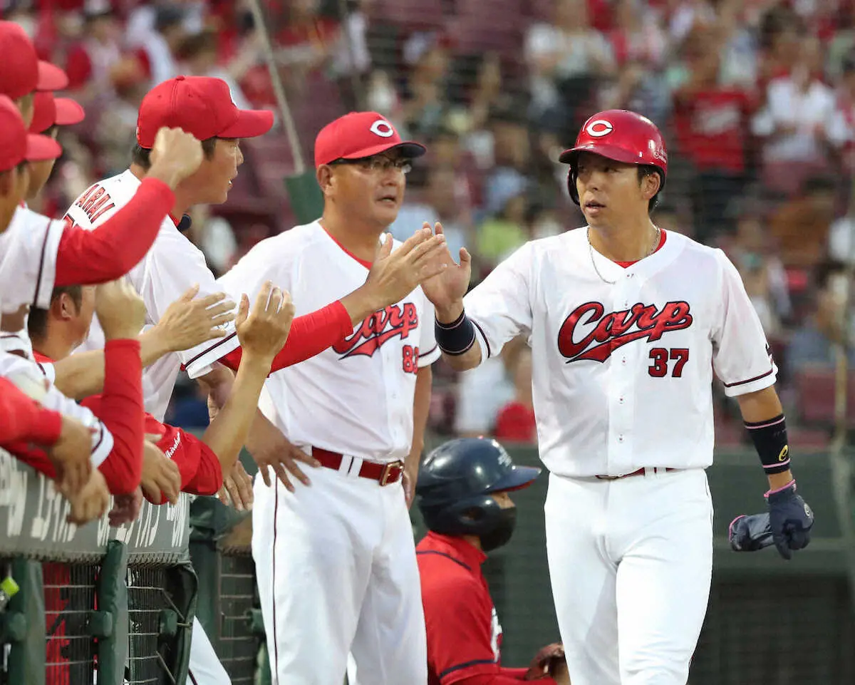 3回、先頭・矢野の中前打を皮切りに2死二塁とすると、菊池が存在感を示した。「運よくサードの頭を超えてくれて良かった。いい先制点になった」。叩きつけた打球は大きく跳ね、三塁手の頭を越える左前適時打となった。
