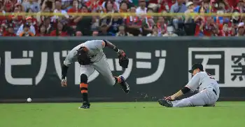巨人・ブリンソン 秋広と激突したプレーに「声が歓声で聞こえなかった。自分が捕るべきボール」