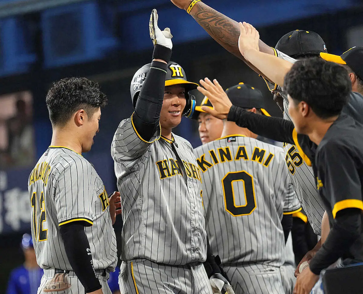 絶好の先制機だった初回1死一、三塁で、先発・石田の前に三ゴロ併殺打に斬られた借りを、ここぞの場面で返した。値千金の1打点で、19年から5年連続60打点をクリア。球団生え抜きでは藤村富美男、田淵幸一、掛布雅之に続き、38年ぶり4人目となった。みな「ミスタータイガース」の代名詞を背負ってきた生粋のスラッガー。その系譜に、令和の猛虎が誇る4番が確かに名を連ねてみせた。