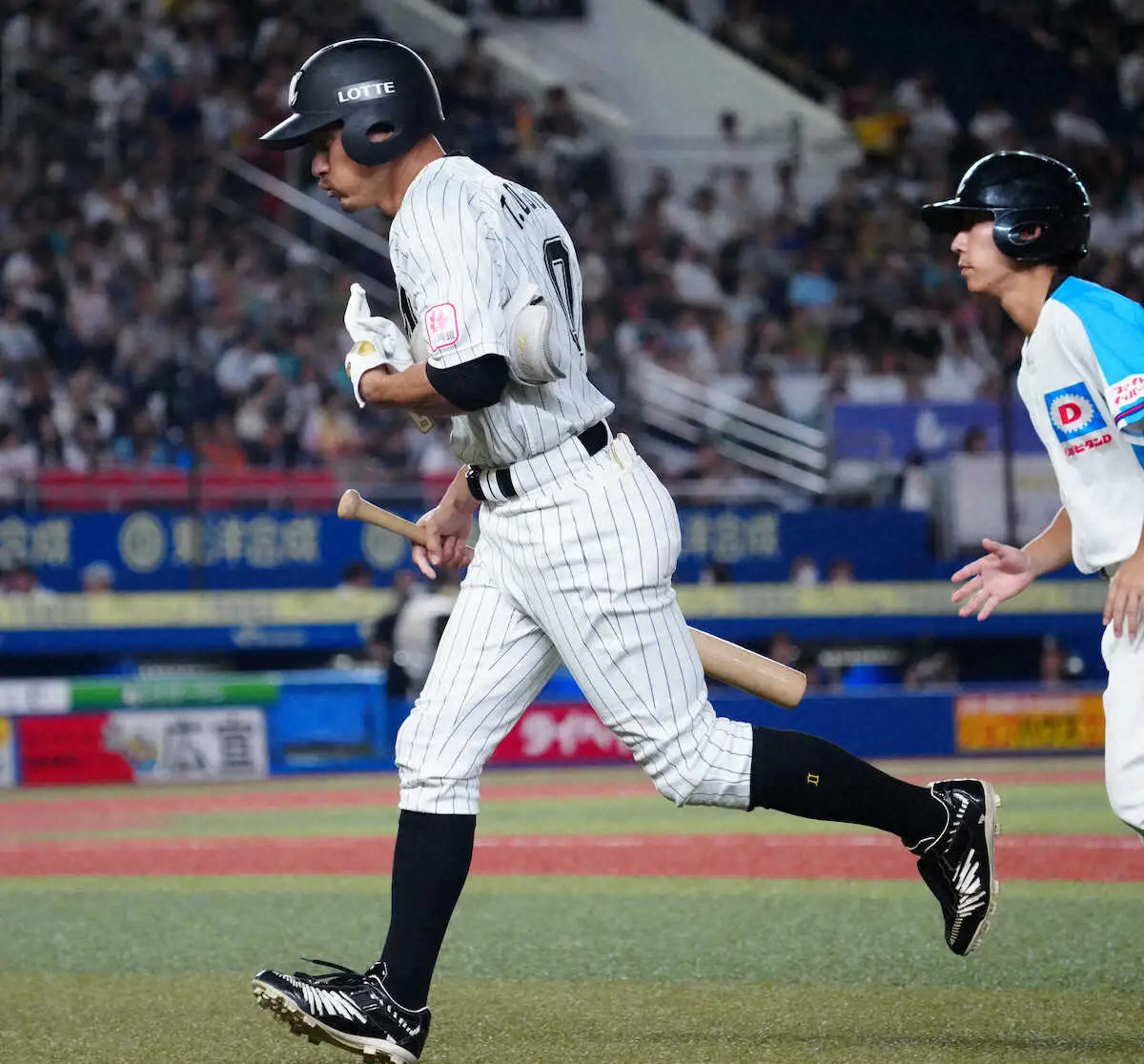 ロッテの荻野貴司外野手(37)が4回の第3打席で中前打を放った後、代走。藤原を送られてベンチに退いた。