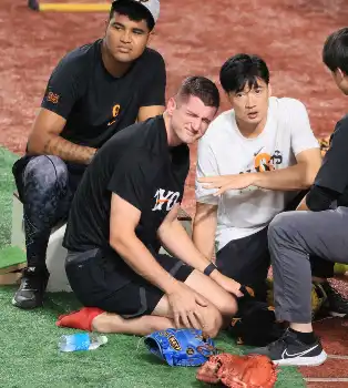 巨人・グリフィンがヘルメット姿でグラウンドに姿を見せた。前日の練習中にフリー打撃の打球が頭を直撃するアクシデントがあり、先発を回避していた。ヘルメット姿に、ナインやスタッフからは拍手で迎えられた。この日、頭部打撲により出場選手登録を抹消された。