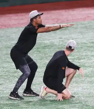 巨人グリフィン、頭部打撲で登録抹消 前日に打球が頭部直撃し先発回避 練習にはヘルメット姿で登場
