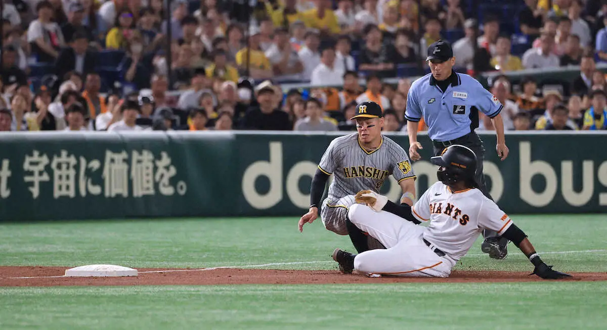 森下の2ランで先制した直後の3回、先発の村上は1死二塁で長野を遊ゴロに打ち取った。二走のブリンソンが三塁へ向かったため、遊撃の木浪は三塁へ送球。タイミングはアウトかと思われたが、三塁送球を三塁・佐藤輝が後逸。打球がファウルグラウンドを転々とする間にブリンソンが本塁生還した。