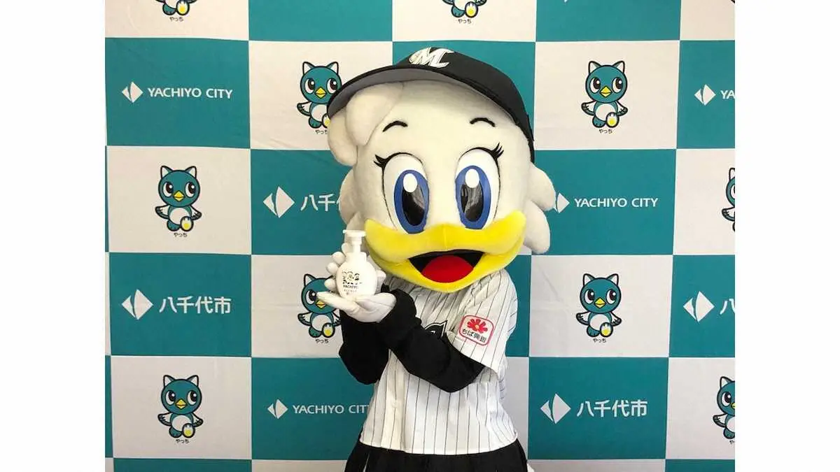 「ちばキッズスマイル・プロジェクト」は子どもたちの安心・安全な学校生活のため、地域振興活動。八千代市への寄贈は3月14日のアルコール除菌剤に続き2回目で、ハンドソープの贈呈は同プロジェクトの取り組みとして初めて。29日には八千代市役所で寄贈式が行われ、八千代市の服部友則市長、設楽憲一教育次長、協賛企業である八千代運送の福島昇社長、球団マスコットのリーンちゃんが参加した。