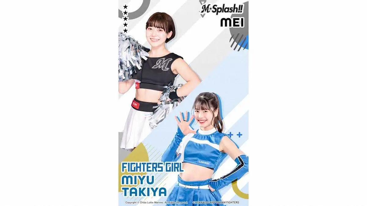 ロッテはスマートフォン上で選手の電子トレカを収集する「MARINES COLLECTION(マリーンズ・コレクション)」で球団公式チアパフォーマー「M☆Splash!!」とファイターズ公式チアチーム「ファイターズガール」とのコラボ企画の販売を開始した。