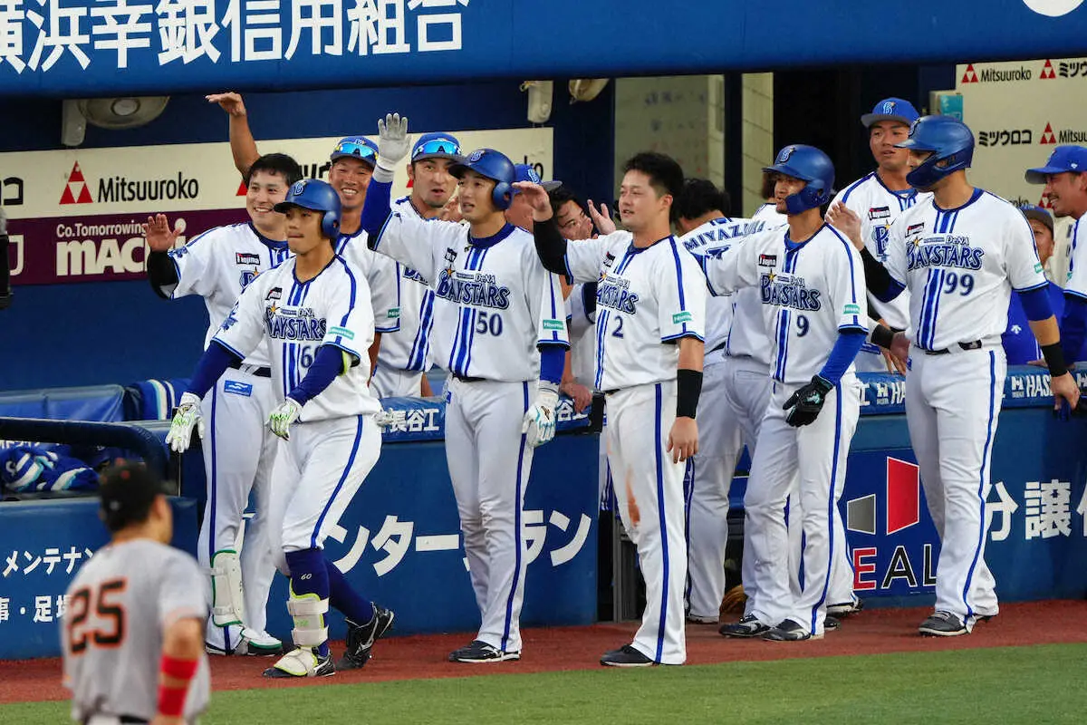 <D・巨>2回、満塁弾を放った代打・知野(右から2人目)はナインに迎えられる(撮影・島崎忠彦) Photo by スポニチ DeNA、知野の3点差逆転代打満塁ホームランは球団史上初!変則両手「デスタ… ギャラリーで見る この記事のフォト 2023年09月03日の画像一覧 もっと見る 2023年09月03日の画像をもっと見る