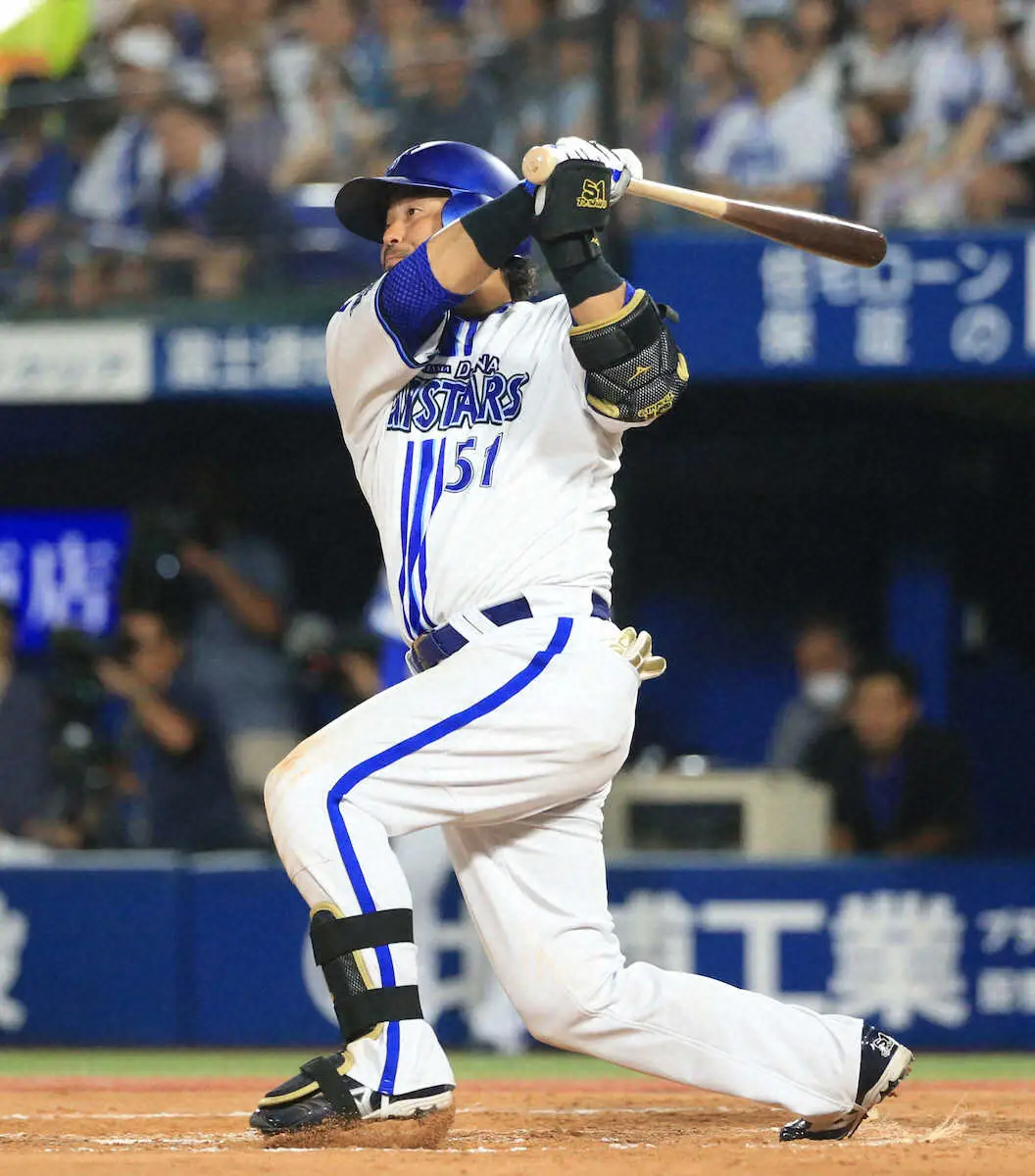 快音を響かせたのは5―3で迎えた6回2死一塁。交代直後のビーディの低め147キロのツーシームを巧みなバットコントロールで捉えた。左翼席に2試合連続の19号2ラン。初回、2回も適時打を放っていた主砲の一発に、三浦監督も「凄く価値があった」と目を細めた。