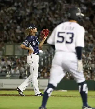 今井は2回1死一、二塁のピンチを背負うと紅林、池田を2者連続三振。その後も長い髪を振り乱しながら三塁すら踏ませない安定感抜群の投球で7回まで無失点。打線は中村が14号ソロ、15号ソロと2本の本塁打を放つなど好投する今井を援護した。