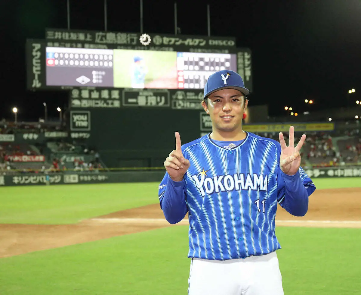 今季3度目の無四球完投勝利(過去2度は完封)は、8安打1失点。リーグトップを独走する13勝目を手に入れた。9連勝は球団では97年の三浦大輔以来。最後の打者・松山をチェンジアップで空振り三振に仕留めると、捕手・山本と歓喜の抱擁を交わした。