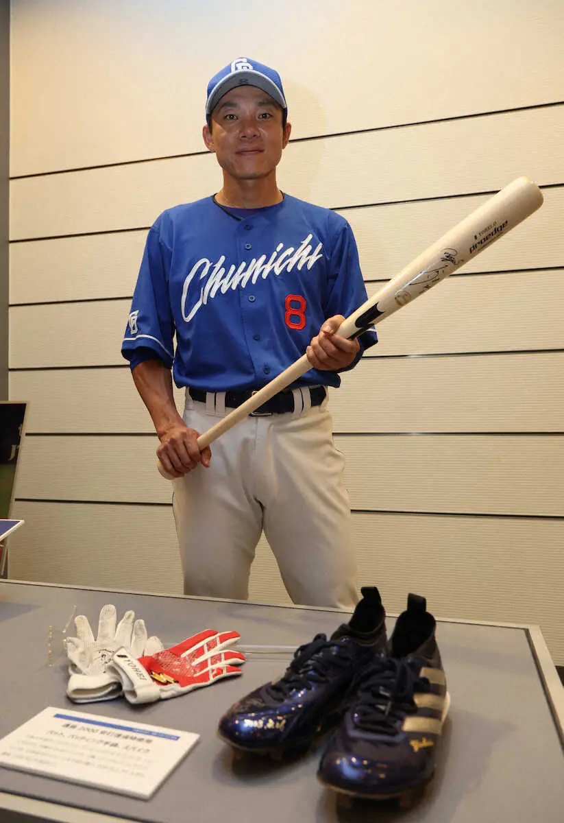 8月26日のDeNA戦で史上55人目の2000安打を達成した中日・大島洋平外野手(37)が8日、東京ドームに併設の野球殿堂博物館に当時使用したバット、打撃手袋、スパイクを寄贈した。