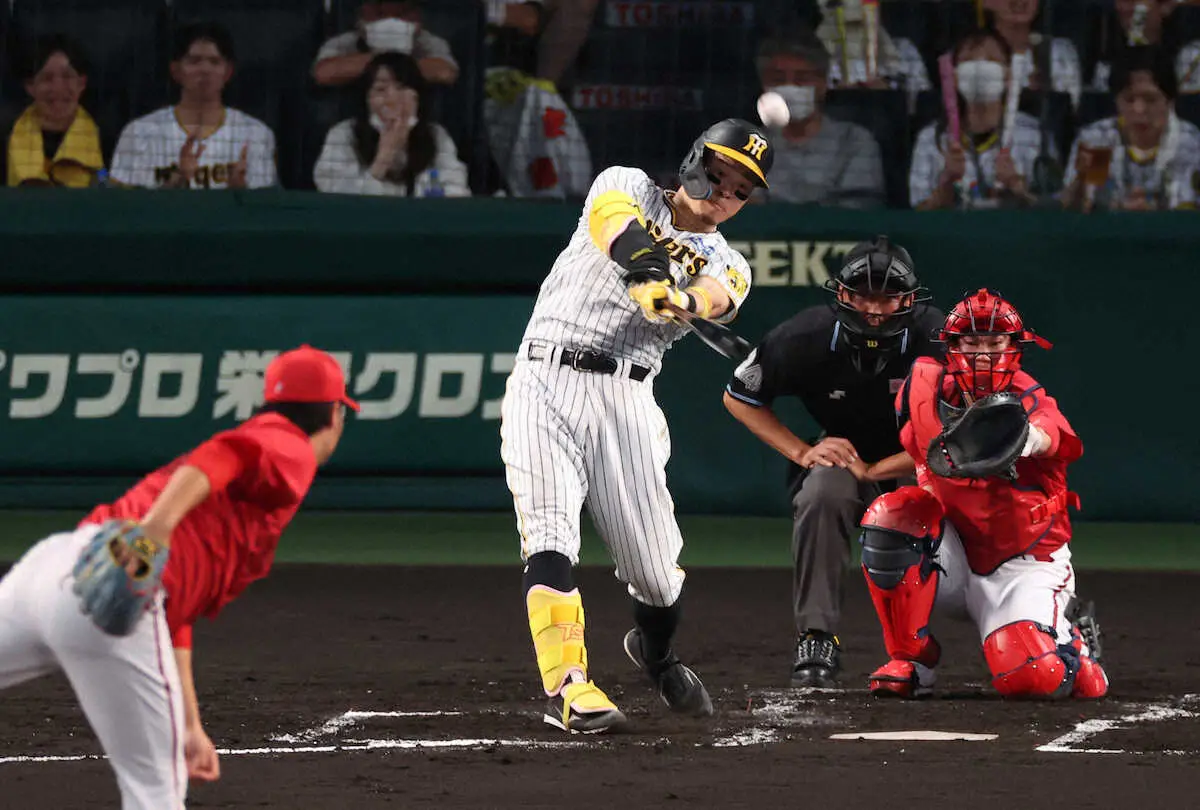 弟分に負けん!初回森下弾に続いて2回に阪神・佐藤輝が床田から一発 18号ソロはバックスクリーン右へ