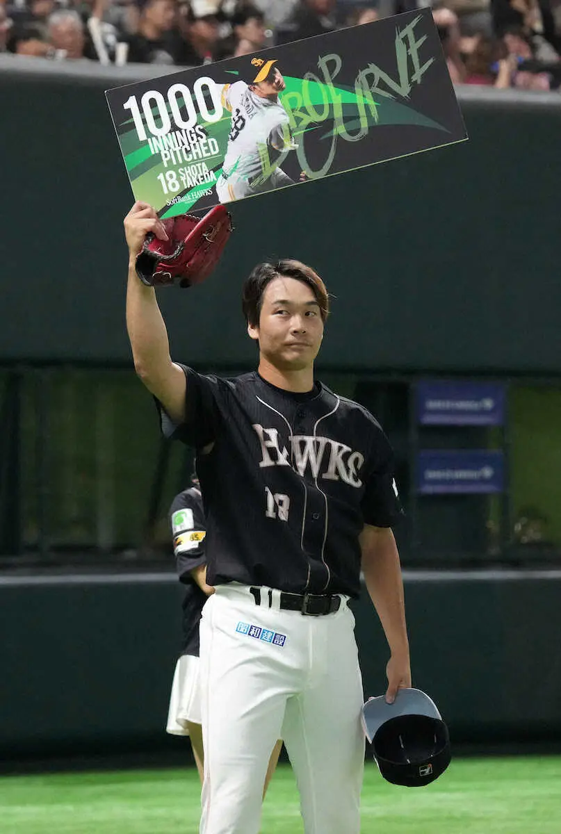 ソフトバンクの武田翔太投手が8日の楽天戦(ペイペイドーム)で5点ビハインドの5回途中から登板し、回またぎの6回1死から辰己を中飛に抑え、12年目で通算1000投球回に到達した。