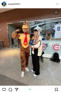 カブス誠也 笑撃「ドンキーコング」姿で移動「恥ずかしいとかはないけど…」 家族ショットも披露